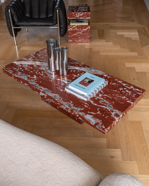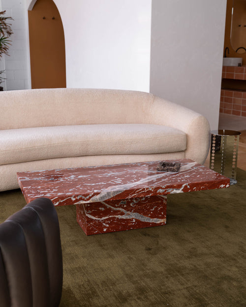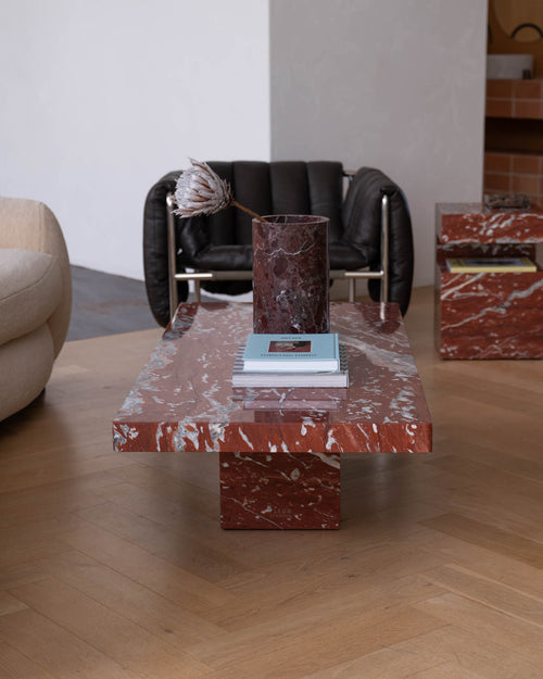 A minimal design with an iconic profile, Gino's expansive form makes a statement as it shows off the beauty of marble. The bold silhouette embodies clean lines and geometric forms, balancing considered proportions for a classic, versatile piece.With its impactful tabletop, Gino is elevated off the ground by a single pillar leg to create a bold statement.