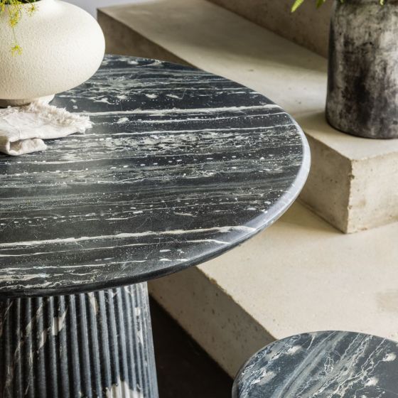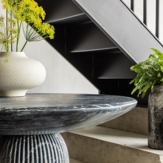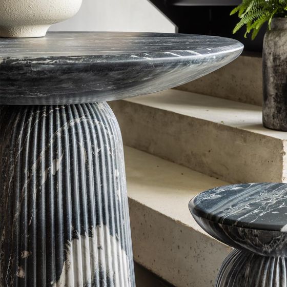 A statement six to eight seater table for the dining room or open-plan kitchen, our Cone Marble Dining Table in solid wood is a design-led piece inspired by nature’s organic shapes. Combining cool white marble with solid acacia wood and robust solid turned wooden legs, this hand crafted table has been skillfully wire brushed to draw the natural wood grains out for a more tactile feel.