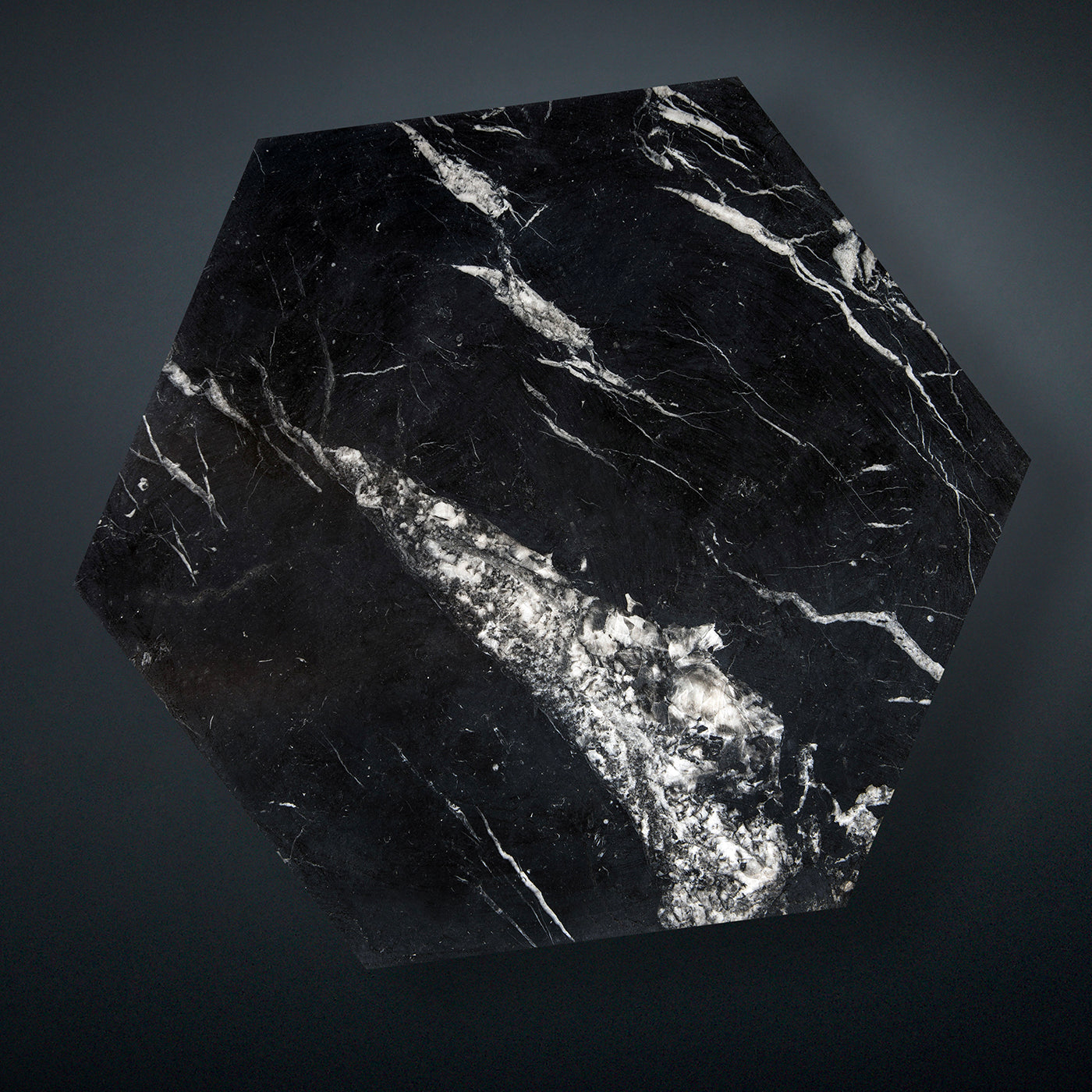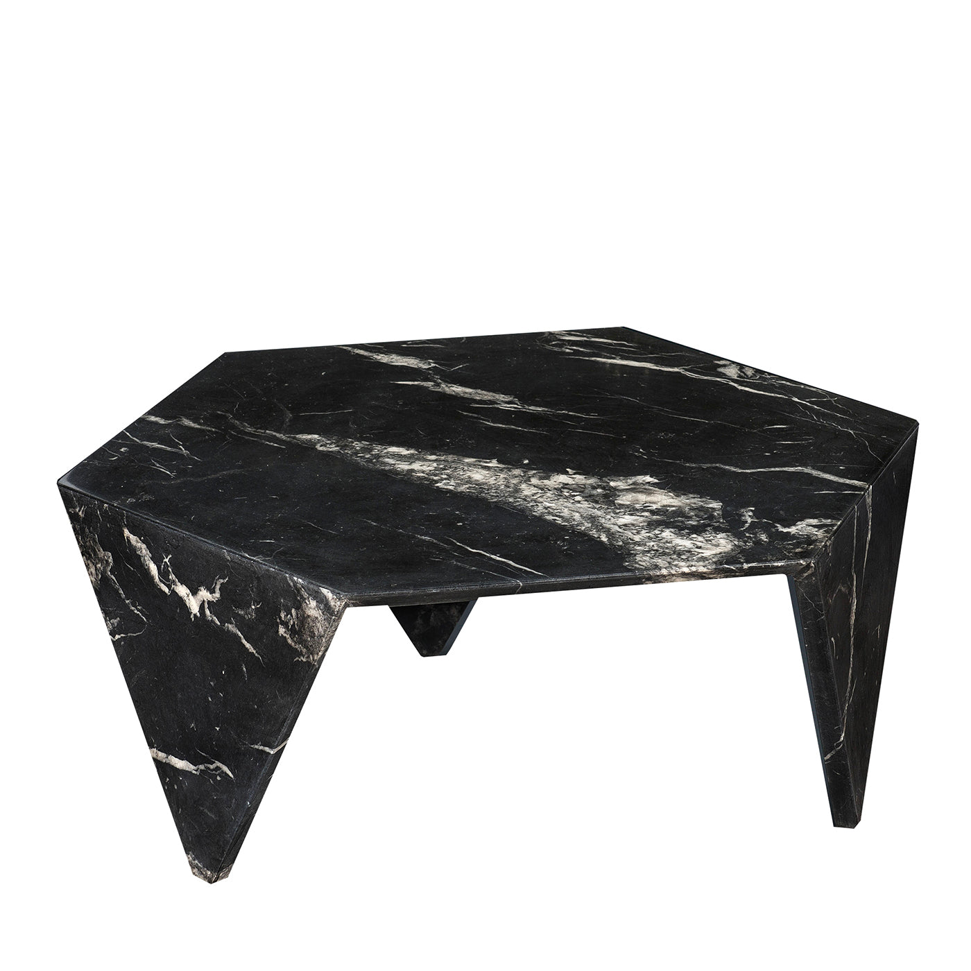 Exuding a modern and elegant allure of bold geometric value, this exquisite coffee table features a hexagonal shape resting on three triangular legs. Ideally combined with others from the same series for a sophisticated and exclusive composition, it is handmade of black marble showcasing precious and striking natural veins At SH Marble, we specialize in crafting exquisite, custom-made marble tables that blend timeless elegance with modern design. Our collection features premium Italian marble, sourced from the finest quarries in Italy, ensuring unmatched quality and durability. Each piece is uniquely designed, showcasing the natural beauty, unique veining, and subtle shades that make marble a sought-after material for luxury furniture.