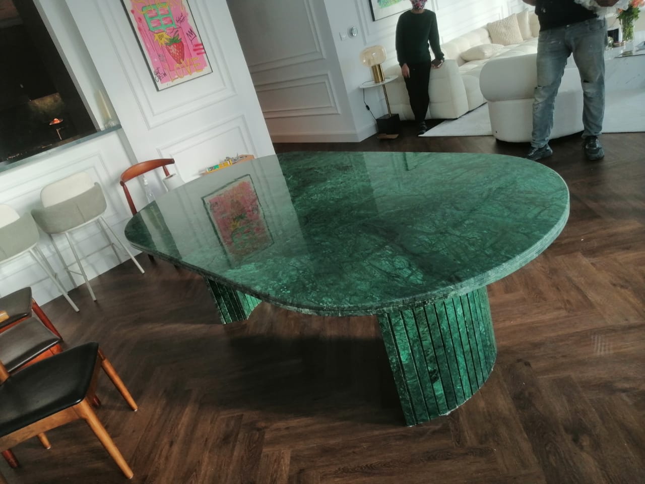 Green Oval Dining Table – Custom Marble Furniture UAE